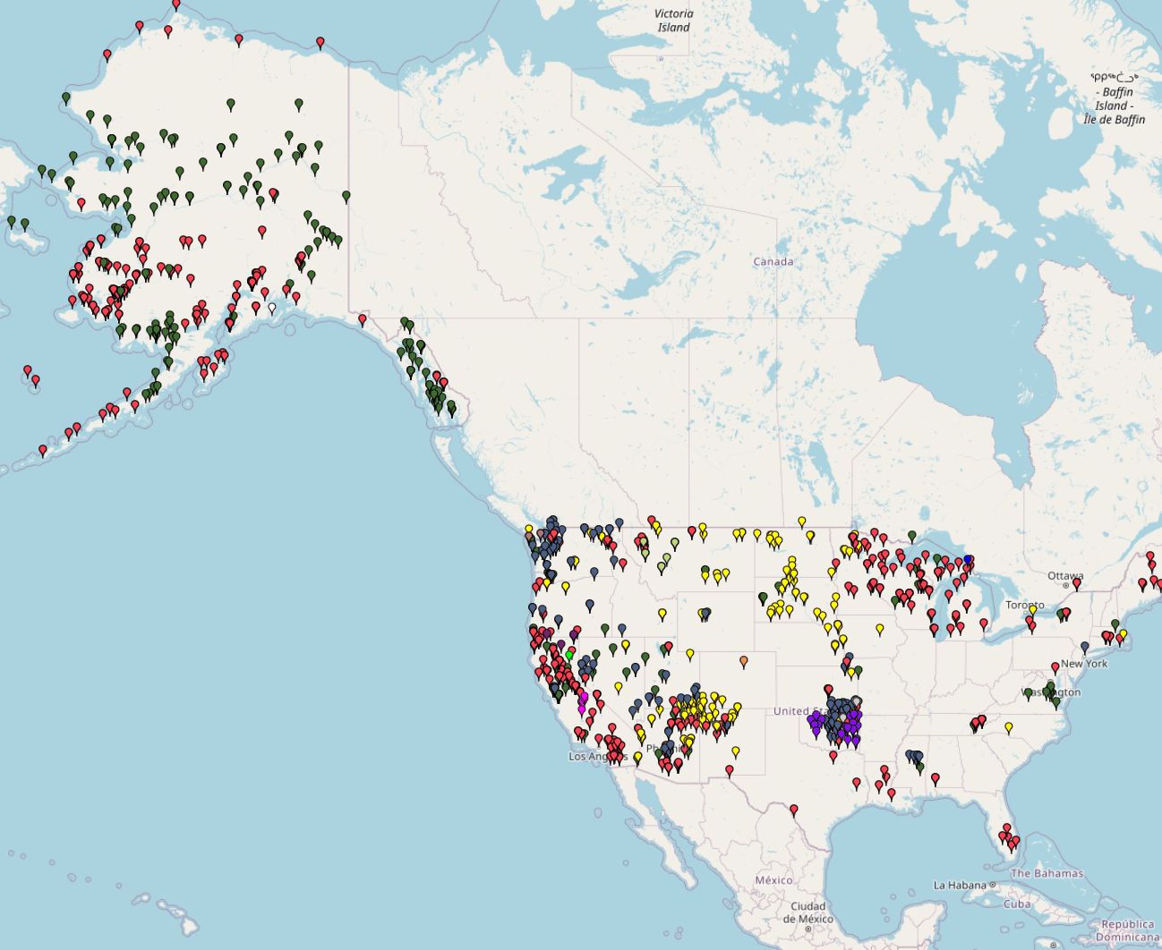 This map displays the geographic distribution of Indian Health Service (IHS) and affiliated health care facilities across the United States, with a prominent concentration in Alaska, the Southwest, and the